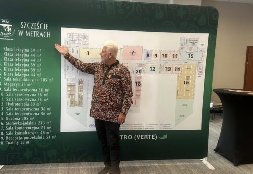 L’obiettivo del progetto “Felicità in Metri” è quello di invitarvi – cari Donatori e Finanziatori – a partecipare al finanziamento dei locali del moderno Centro di Riabilitazione. Ogni m² ha un costo di 2000 PLN / circa 470 EUR. Invitiamo calorosamente imprenditori, aziende, comunità, gruppi di amici, famiglie, singoli individui e chiunque lo desideri ad unirsi a questo progetto e a realizzare insieme a noi questo nobile sogno. Non abbiamo alcun dubbio che, grazie al cuore empatico di tante persone, nascerà questo vero e proprio Monumento della Felicità, ovvero Furaha – tutto questo per bambini con paralisi cerebrale, autismo e sindrome di Down provenienti da tutto il mondo.
