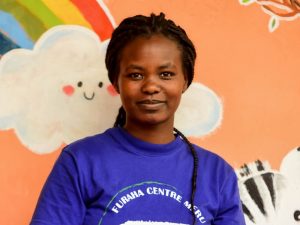 Lavora al Furaha Center dall’aprile 2017 e si è laureata in Terapia occupazionale presso il Kenya Medical Training College, Nairobi. È una madre sola che cresce una figlia di nome Zawadi. Le piace giocare con i bambini, cantare, guardare film.