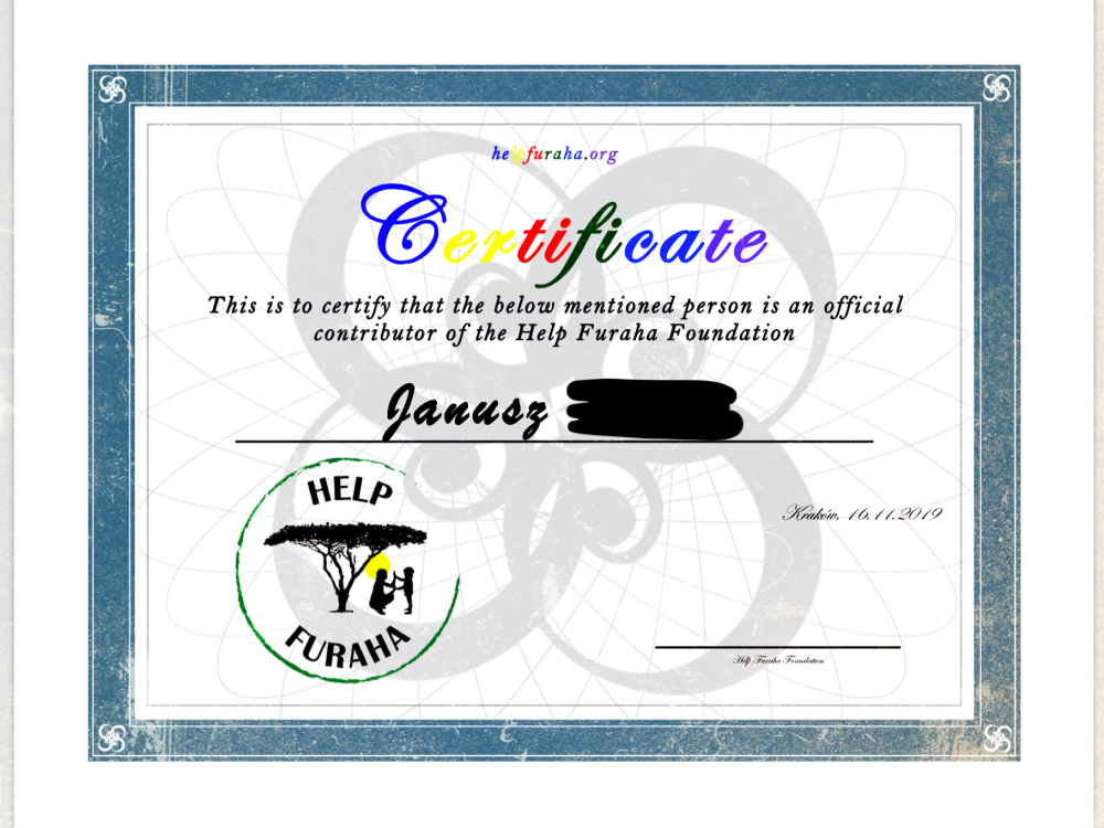 „Zapoznałem się z działalnością Fundacji Help Furaha za pośrednictwem Mariusza Kamińskiego i jego akcji „W rytmach szczęścia dla Furaha” https://fundacjahelpfuraha.org/podsumowanie-w-rytmach-szczescia/