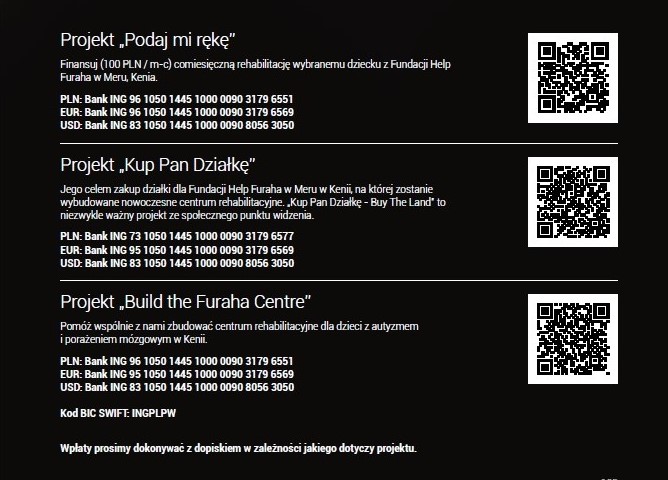 Wszelkich wpłat na rzecz Fundacji Help Furaha należy dokonywać na dane: